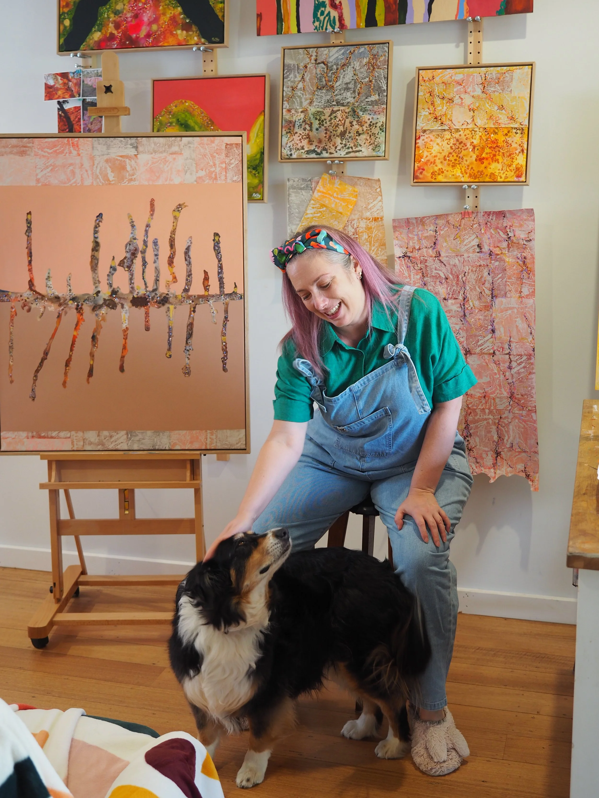 Melanie’s practice takes an expanded approach across media — a method she calls expanded crafting. Her work weaves together stories of care and resistance, from the domestic to the environmental. Stitching, painting, and assembling, she explores systems of obsession and control, and how acts of making can become quiet forms of protest, mourning, and renewal.